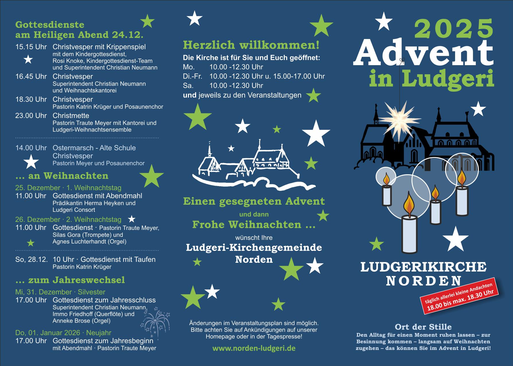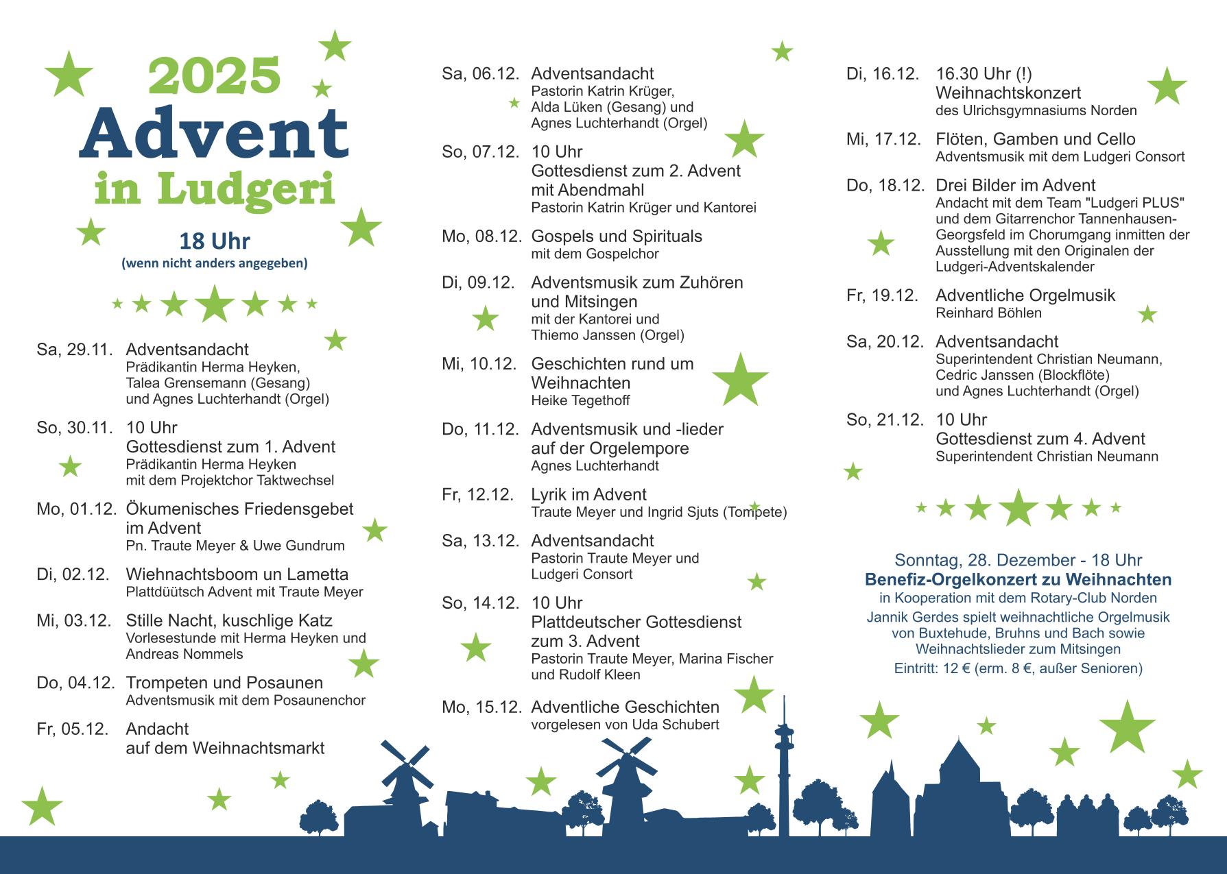 Auch 2025 finden wieder (fast) jeden Abend um 18 Uhr ganz unterschiedliche Veranstaltungen in der Ludgerikirche statt.