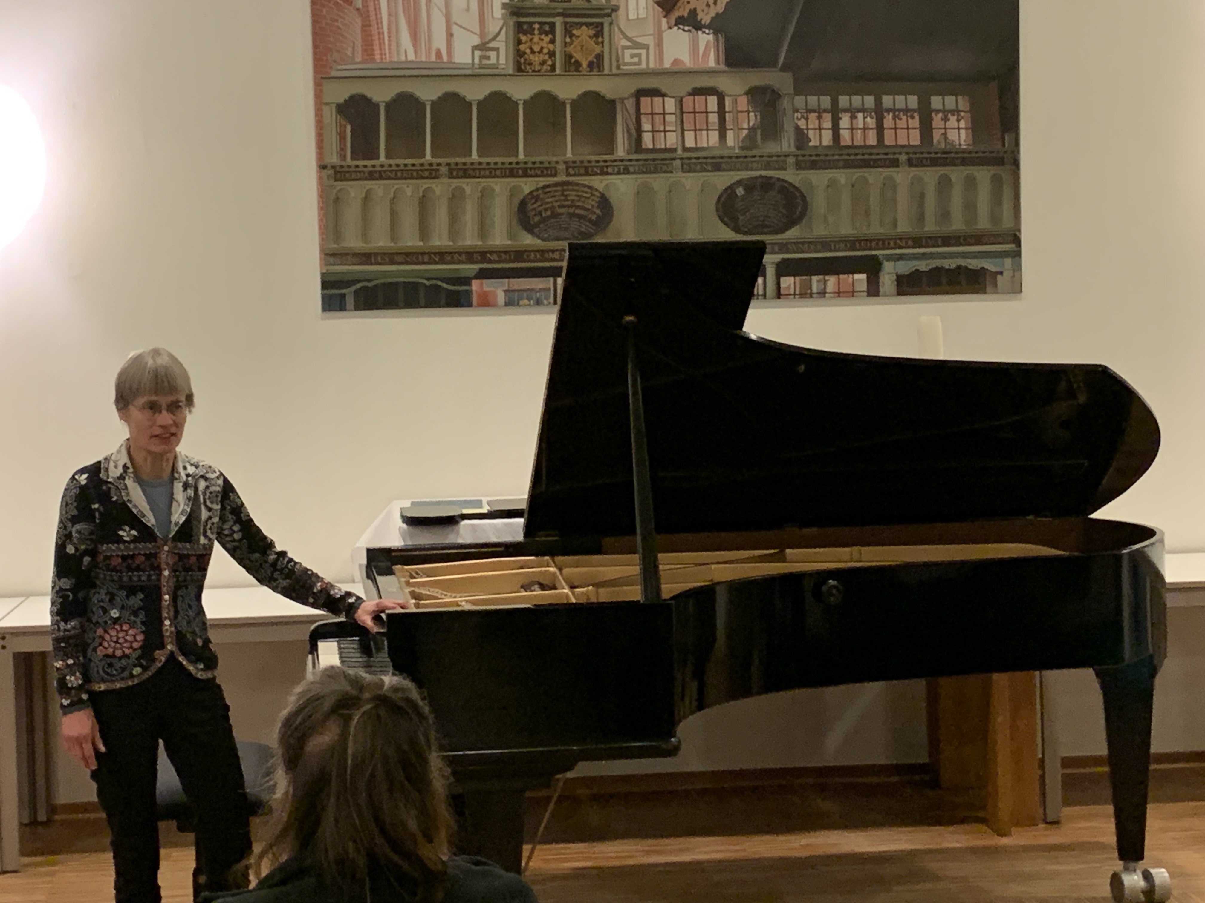 Annette Liss, die Stücke aus einer Zeitspanne von 1809 – 2000 ausgesucht hatte, bewies nicht nur ihr künstlerisches Können, sondern nahm die Zuhörerinnen und Zuhörer auch zum jeweiligen Stück mit, indem sie kurze Einführungen zu den einzelnen Werken gab. Auf diese Weise wurde nicht nur erkennbar, dass bei zwei Werken von Chopin die Melodie mal mit der rechten und mal mit der linken Hand gespielt wurde, sondern sie wies ebenso auf die unterschiedlichen Intentionen der Komponisten hin. Ihre einfühlsame und mitreißende Interpretation der Stücke verdeutlichte sowohl träumerische Phrasen, als auch dramatische und virtuose Kompositionen.