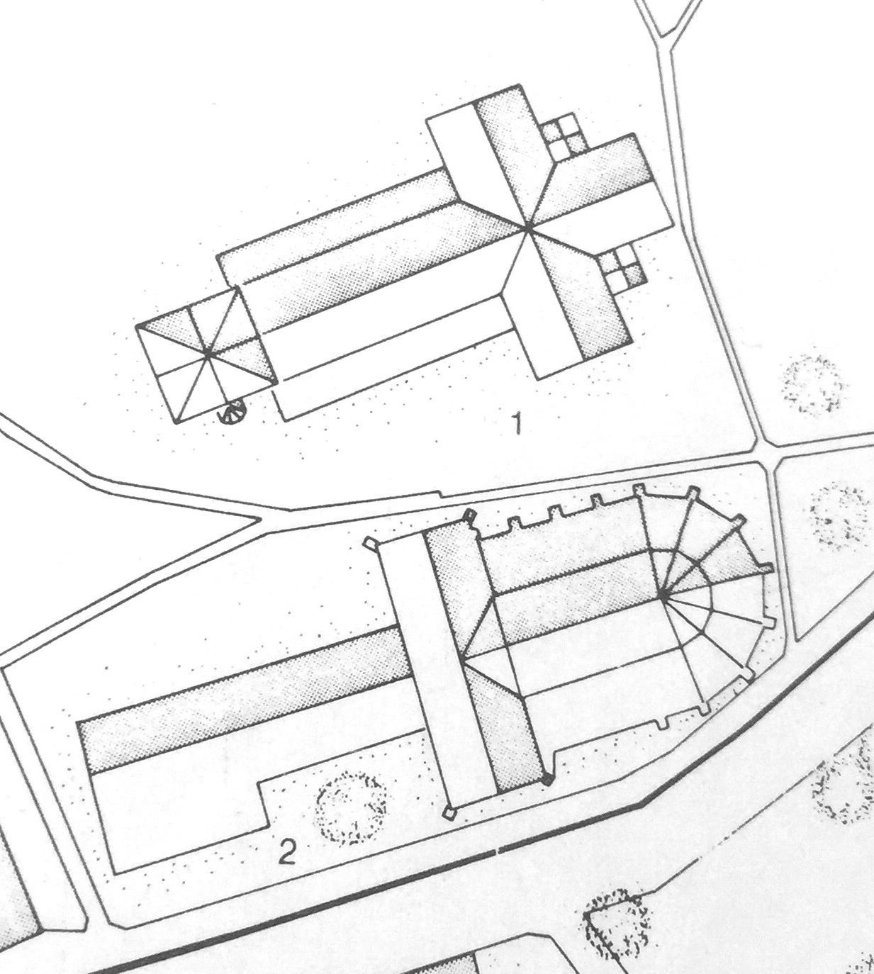 Wie nahe Andreas- und Ludgerikirche beieinander lagen, ist auf der Zeichnung von Maike Kozok zu sehen (aus: Emder Jahrbuch 1992, S. 19-68 Abb. 22 Lage der Kirchen um 1530).